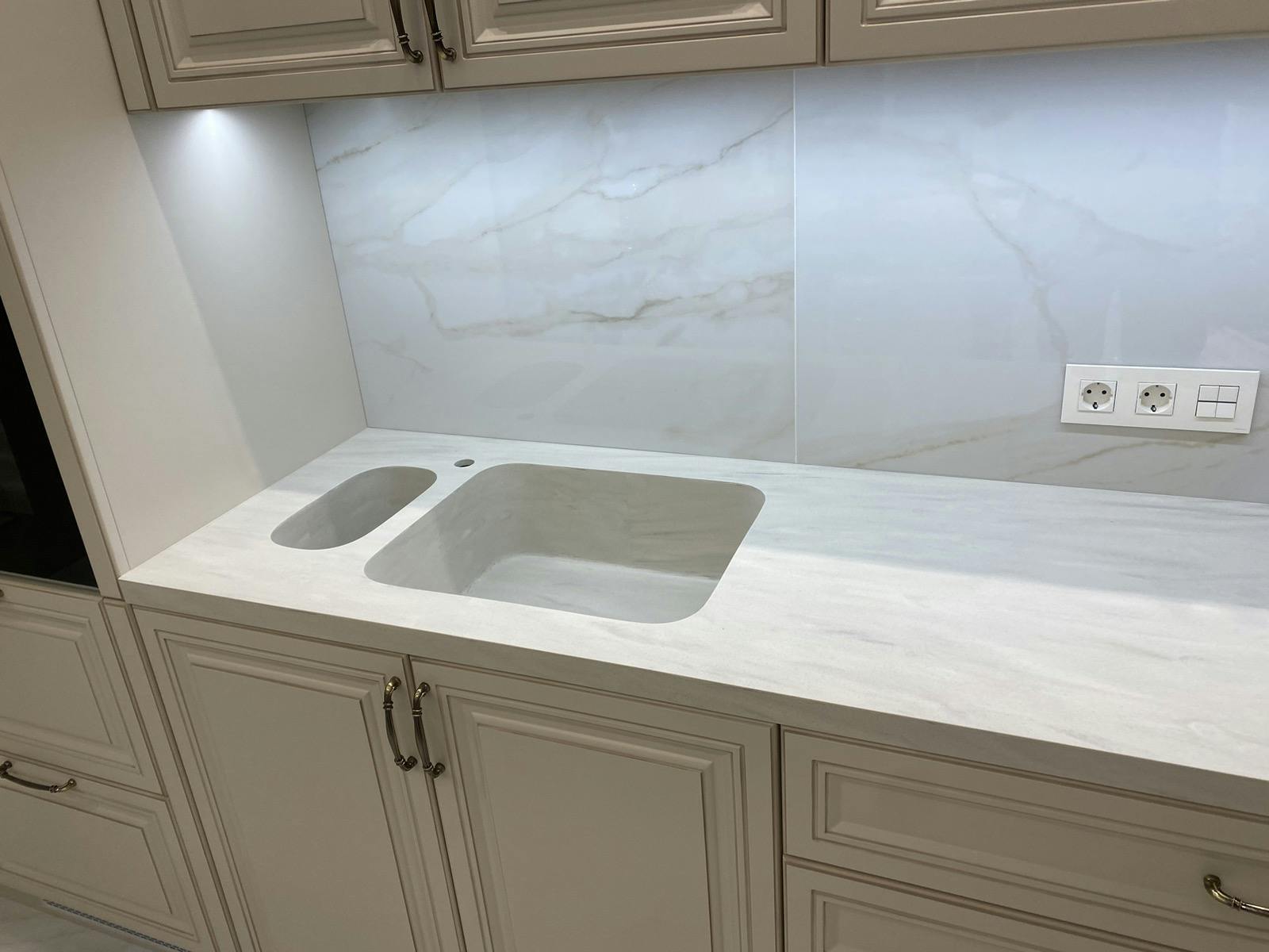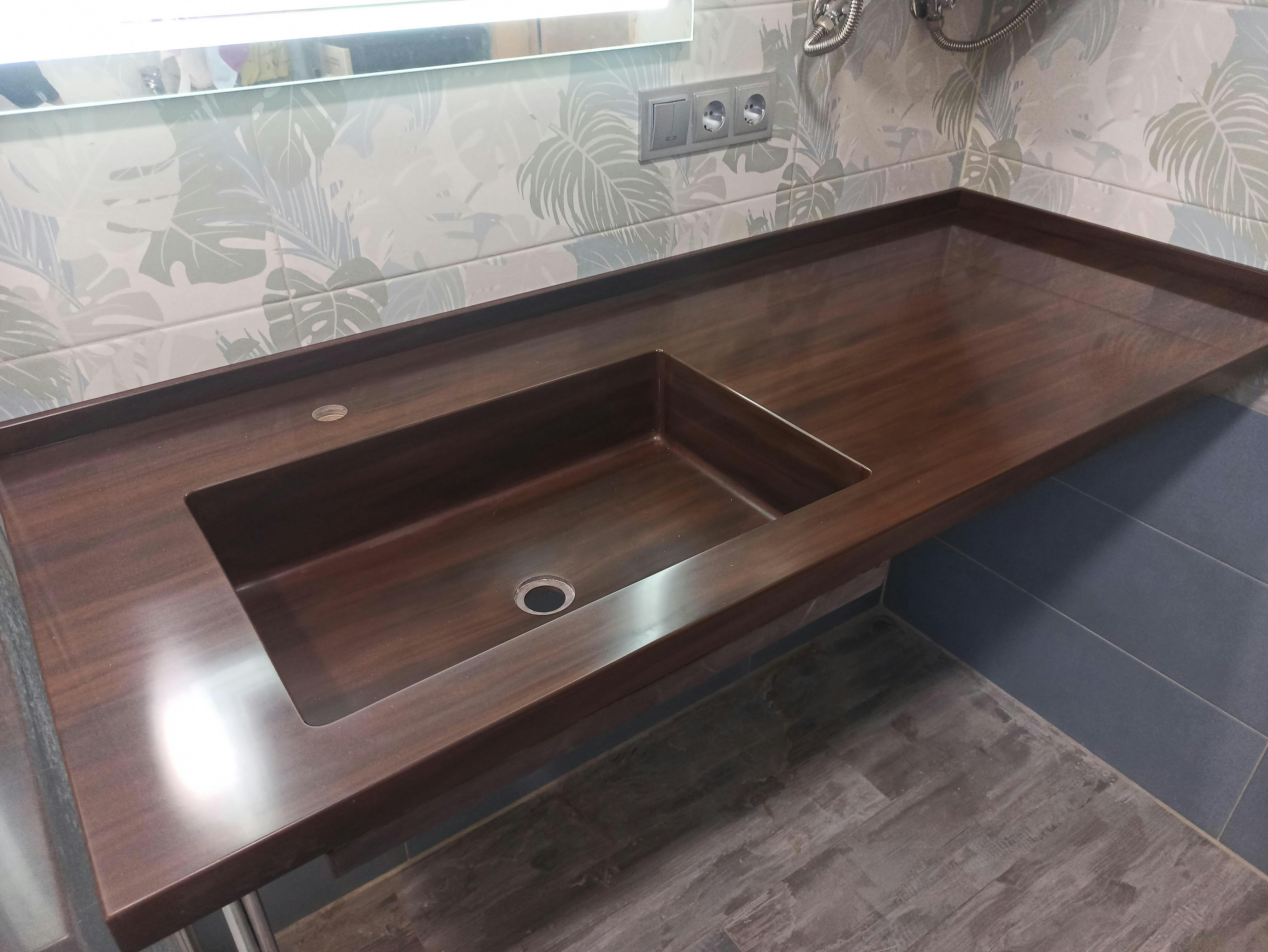 Немає видимих швів та стиків, можна виготовляти будь-які форми та робити мийки в колір стільниці